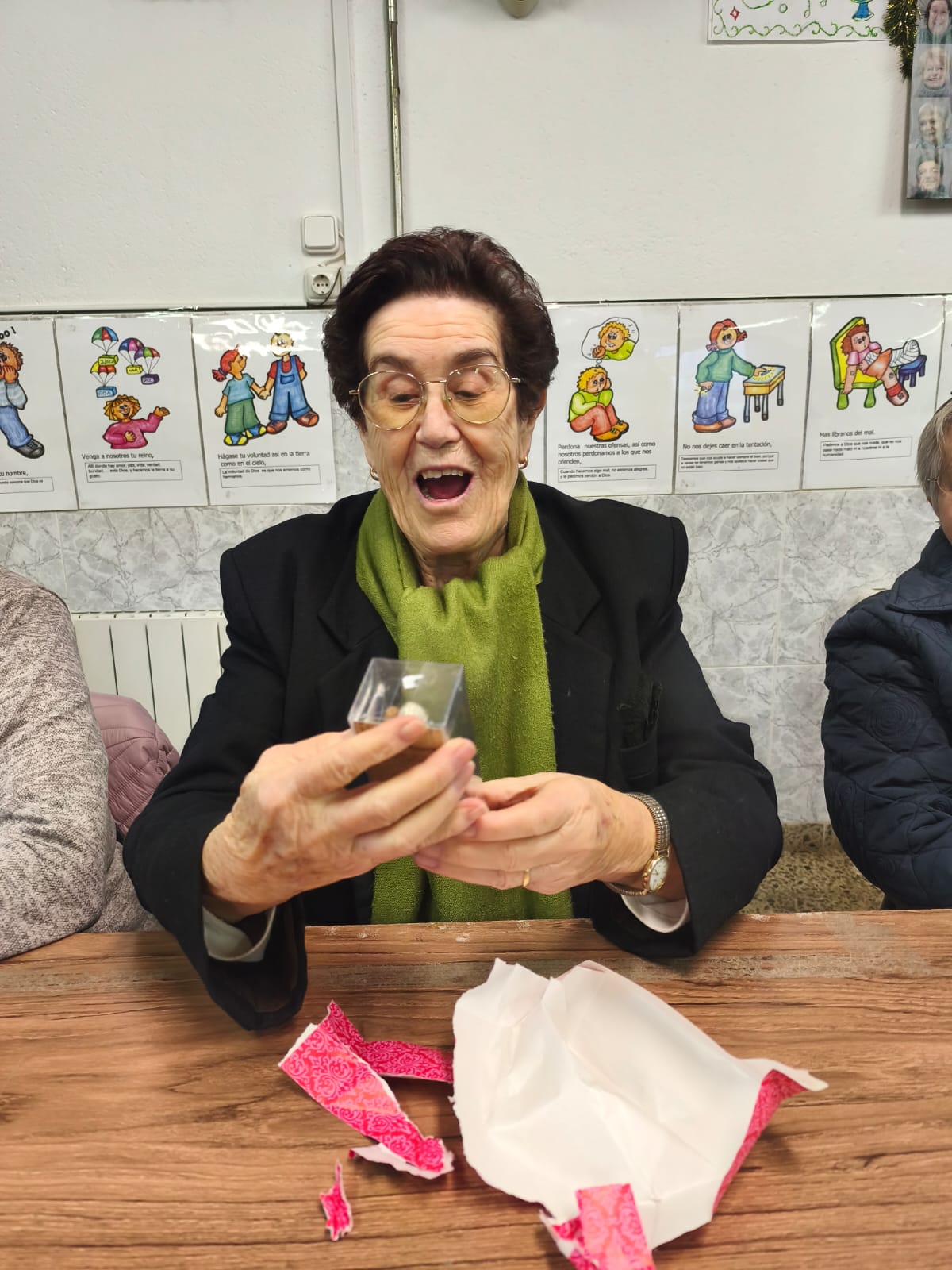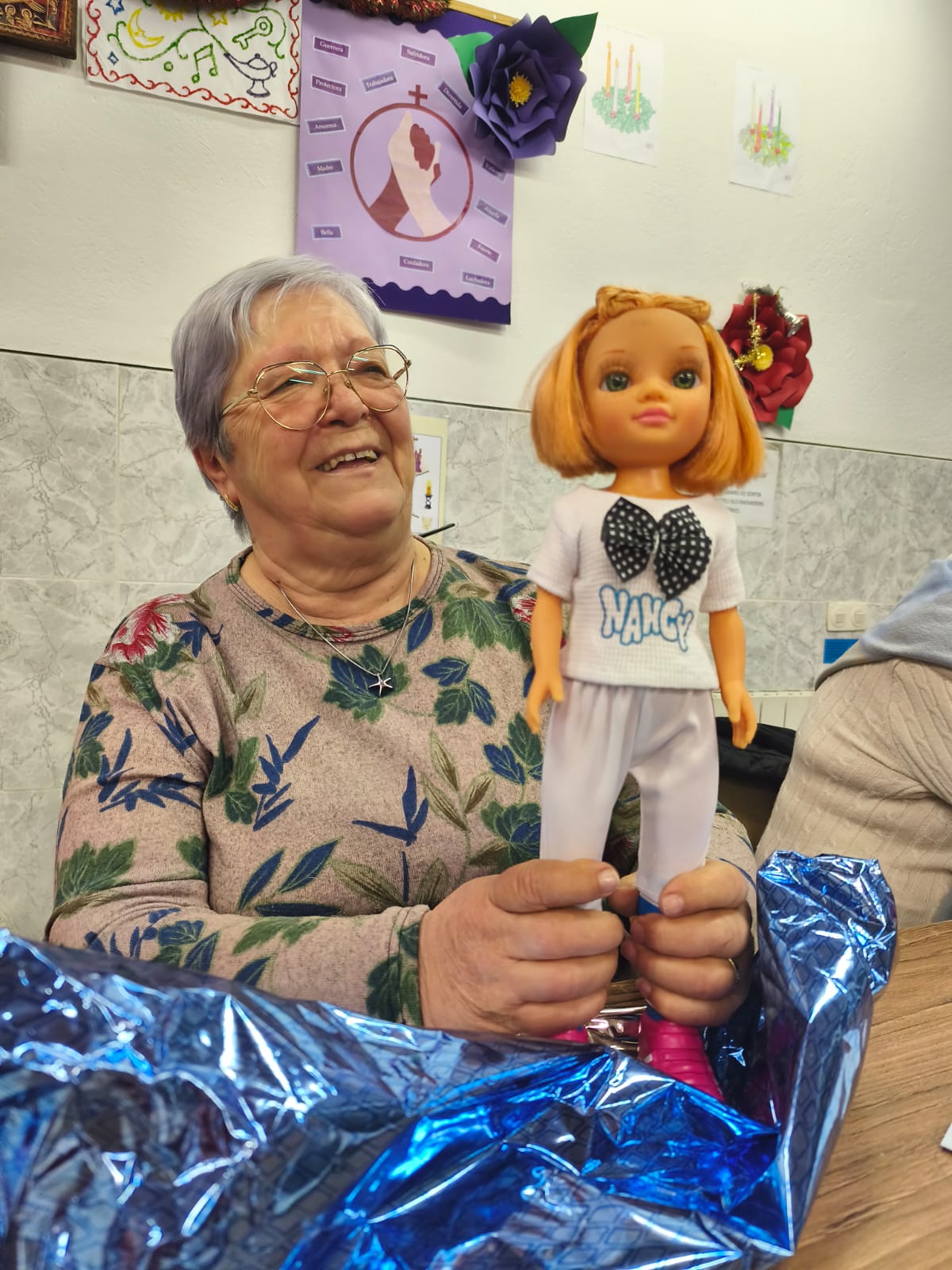 Moltes de les dones recordaven com, durant la seva infància, les nines eren un luxe inaccessible o objectes fràgils de cartró. Una d'elles explicava, amb els ulls humits, com va perdre la seva única nina de cartró una nit de pluja en deixar-la fora de casa. La Feli, que amb 94 anys és la veterana del grup, no podia creure el que veia quan va obrir el seu paquet: "¡Mi primera muñeca, mi primera muñeca!", repetia emocionada. Per a ella, i per a moltes altres, aquest regal era el retrobament amb una il·lusió que havia quedat pendent durant gairebé un segle.